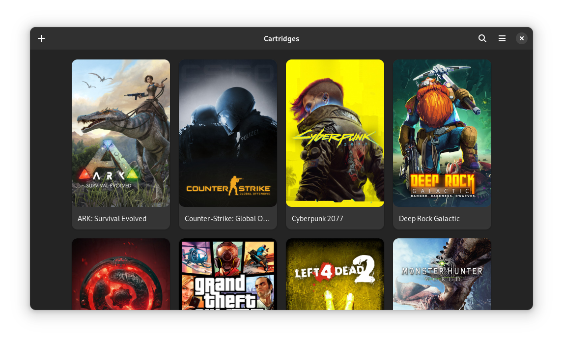 Cartridges is a simple game launcher written in Python using GTK4 and Libadwaita.